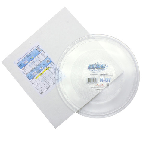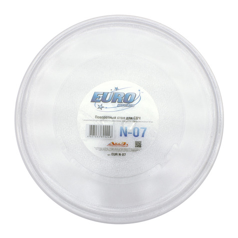 EURO Kitchen EUR N-07 Поворотный стол (тарелка) 255 мм для СВЧ с коуплером. Изготовлена из специального жаропрочного стекла. Предназначена для равномерного разогрева продуктов в микроволновой печи. Упаковка: индивидуальная картонная коробка с таблицей подбора.