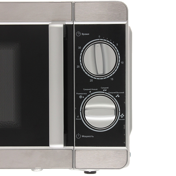 Две крупные поворотные ручки обслуживают всю систему управления рабочими режимами микроволновой печи Supra MWS-2104MS. С их помощью устанавливается мощность микроволн, включается функция разморозки, определяется период времени приготовления и так далее. Простота конструкции даёт возможность упростить процесс управления до интуитивно доступного уровня.