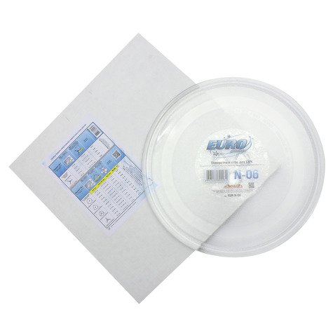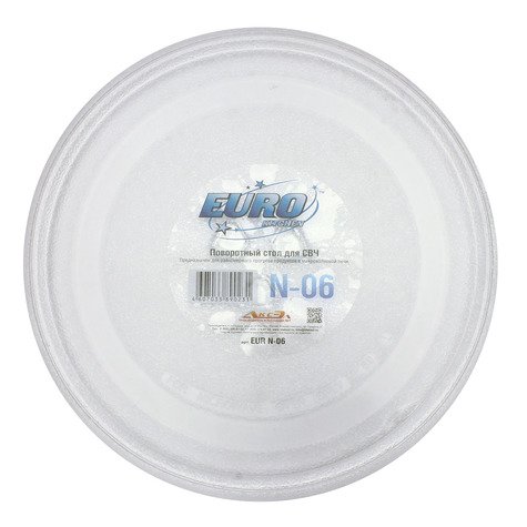 EURO Kitchen EUR N-06 Поворотный стол (тарелка) 245 мм для СВЧ с коуплером.  Изготовлена из специального жаропрочного стекла. Предназначена для равномерного разогрева продуктов в микроволновой печи. Упаковка: индивидуальная картонная коробка с таблицей подбора.