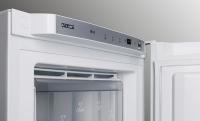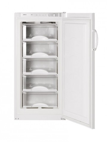 Устройство имеет классическую вертикальную компоновку корпуса, благодаря чему максимально похоже на привычный холодильник, поддерживает функцию быстрой заморозки продуктов и может похвастаться классом энергопотребления A+, что позволяет позиционировать его как достаточно экономное решение — среднегодовое энергопотребление составляет около 221 кВт. Общий полезный объем рабочей камеры составляет 164 л, при этом внутри нашлось место для 5 раздельных ящиков для хранения продуктов. Сами ящики изготовлены из пластика и легко выдвигаются, дополнительно имеется также контейнер с формой для приготовления льда. Морозильный шкаф Atlant M 7201-100 имеет перенавешиваемые дверцы, что повышает удобство размещения техники даже в стесненных условиях, поскольку дверцу в любом момент можно перевесить с правой стороны на левую. Минимальная рабочая температура составляет -18 °C, а специальная антибактериальная защита не допускает появление грибка, плесени, бактерий и прочих микроорганизмов. Морозильник принадлежит к климатическому классу SN-T и способен работать в температурном режиме +10…+43 °С. Также обратим внимание на то, что морозильная камера имеет стандартный для этой категории техники уровень шума — 39 дБ.