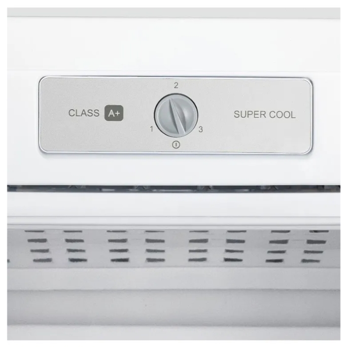 Панель управления модели расположена внутри камеры. Откорректировать температуру позволит механический термостат с 3 режимами заморозки, где «1» — самая высокая температура, а «3» — максимально низкая -18°С.