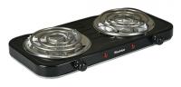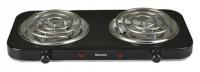 Настольная электрическая плита. Оптимальный вариант для владельцев небольшой кухни или для использования на даче. Позволит приготовить пищу при отсутствии стационарной плиты. Обладает двумя спиралевидными конфорками. Установка температуры производится механическими регуляторами. Быстрый выход нагревательного элемента на максимальную рабочую температуру. Защита от перегрева обеспечивает безопасный процесс эксплуатации и длительный срок службы плиты.