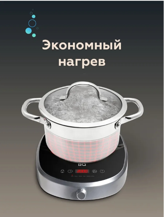 Индукционная плита BQ HP121SS с мощностью конфорки до 2400 Вт предлагает вам 24 пошаговых режима нагрева – с шагом в 100 Вт. Устанавливайте необходимую температуру нагрева в зависимости от типа и консистенции блюд, а также от ваших собственных предпочтений.