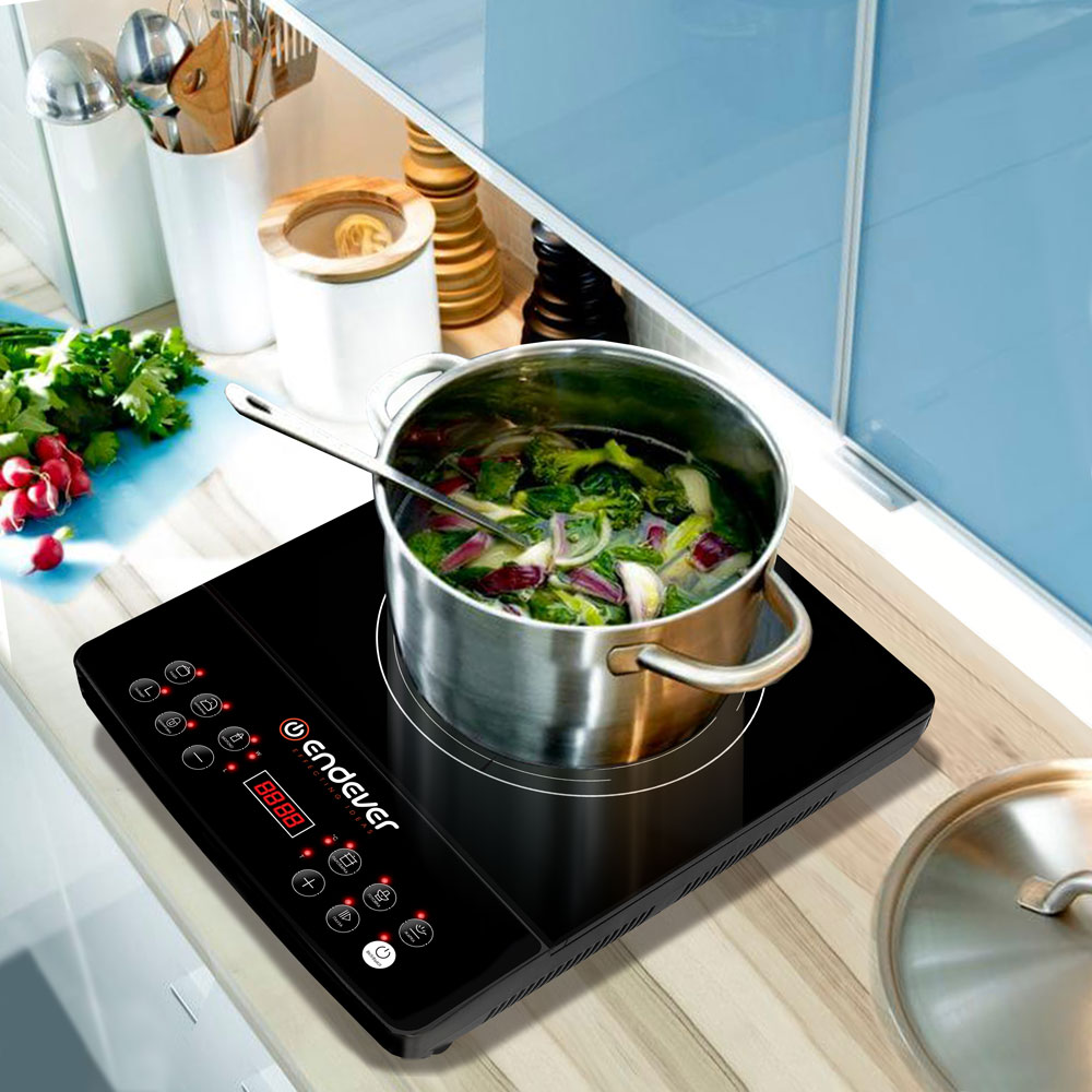 Ее компактный размер индукционной плиты ENDEVER Skyline IP-57 и длина сетевого кабеля 1,3 метра позволит быстро найти свое место на Вашей кухни. Прорезиненные ножки позволят не беспокоиться о надежной фиксации на любой столешнице.