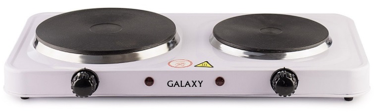 Плитка электрическая GALAXY GL 3002 оснащена двумя нагревательными элементами суммарной мощности 2500 Вт и диаметрами 150мм и 185 мм. Также предусмотрены 2 индикатора работы и два регулятора температуры нагрева.