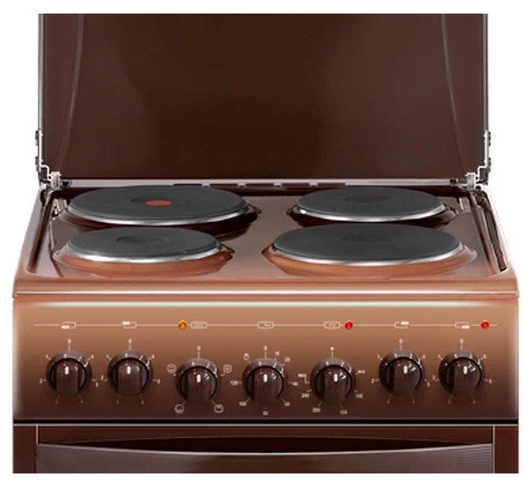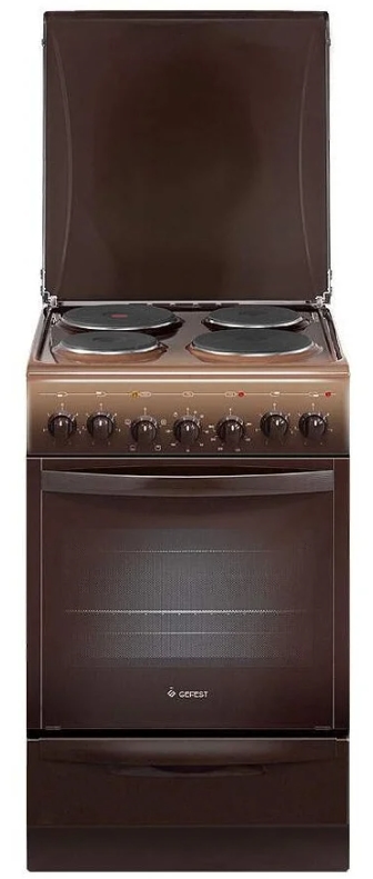 Электрическая плита GEFEST 5140-02 0038 потребляет даже при полной нагрузке не более 5.5 кВт электроэнергии и по праву относится к числу приборов с классом энергопотребления А. Эта плита, получившая коричневый корпус из эмалированной стали, имеет традиционный для кухонных плит дизайн и органично выглядит в интерьере кухни с мебелью тёмных тонов. Плита оснащена четырьмя конфорками различного размера и назначения и вместительной духовкой объёмом 52 литра с грилем и подсветкой. Механическое управление конфорками и духовкой электроплиты, выполненное в виде поворотных переключателей, размещено на передней панели прибора. Там же находится таймер, помогающий выбрать необходимое для приготовления блюда время. Плита с удачным соотношением функционала и качества отличается компактными габаритами и подходит для кухонь небольшого метража.