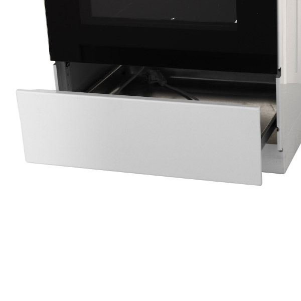 В нижней части плиты предусмотрен вместительный ящик, предназначенный для хранения посуды и различных аксессуаров, которые могут пригодиться на кухне.