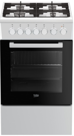 Комбинированная плита шириной 50 см с газовой варочной поверхностью и электрическим духовым шкафом. Газовые конфорки оснащены электроподжигом с помощью кнопки. Духовка объемом 60 л работает в режимах верхнего, нижнего нагрева и гриля. Плита имеет класс энергопотребления А, удобный термостат, который позволяет установить точную температуру внутри духовки, и механический таймер с автоматическим отключением. Внизу плиты расположен выдвижной ящик для хранения посуды.