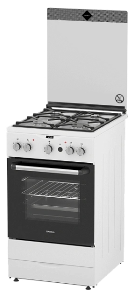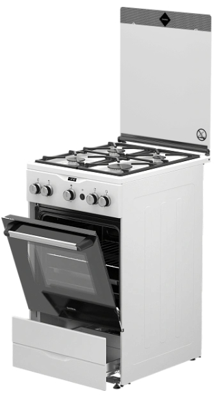 Современная газовая плита в классическом белом цвете идеально дополнит любой кухонный интерьер. Она проста и удобна в эксплуатации. Прочные чугунные решетки стола не деформируются со временем. Газовые горелки разжигаются при помощи электророзжига, встроенным в ручки управления. Внизу плиты установлен выдвижной ящик для хранения посуды.