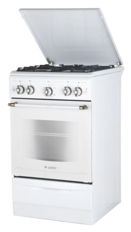 Газовая плита Gefest ПГ 5100-02 снабжена четырьмя конфорками, установленными на эмалированном рабочем столе. Она укомплектована массивными чугунными решётками, позволяющими аккуратно передвигать тяжёлую посуду.