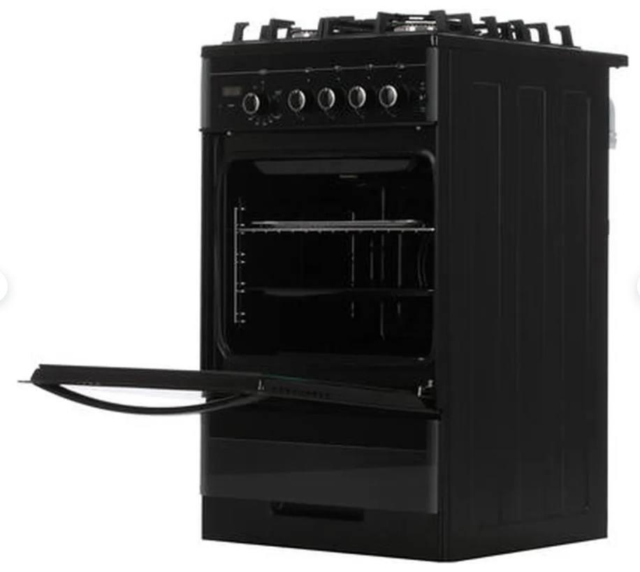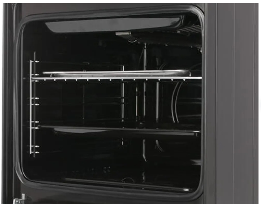 Газовая духовка кухонной плиты GEFEST 5500-03 0044 оснащена встроенным грилем и вращающимся вертелом, противнями и решеткой для запекания блюд. Духовка и конфорки снабжены электроподжигом газа, который срабатывает при нажатии на поворотные регуляторы, управляющие режимом работы прибора. Система газ-контроля предотвращает утечку газа из конфорок и духовки: в случае угасания пламени она перекрывает подачу газа.