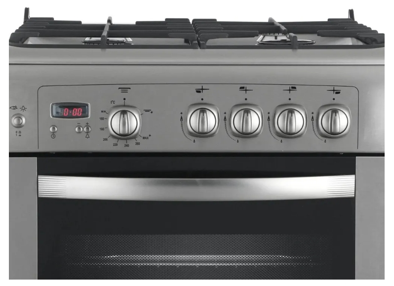 Присутствует амортизатор закрывания дверцы. Штуцер для подключения газового баллона идет в комплекте. Мощность гриля — 1,9 кВт. Электроподжиг конфорок — автоматический. Прибор оснащен системой безопасности, которая отключает подачу газа при отсутствии пламени. Таймер позволяет выставлять время приготовления.
