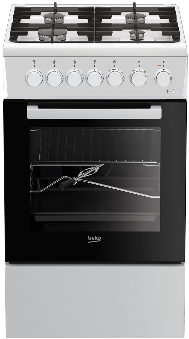 Комбинированная плита с газовой варочной поверхностью и электрическим духовым шкафом. Газовые конфорки оснащены электроподжигом с помощью кнопки. Духовка объемом 55 л имеет несколько режимов работы, включая конвекцию, гриль и быстрый разогрев. Внутреннее эмалированное покрытие облегчает очистку духовки после каждого приготовления. Плита имеет ширину 50 см и класс энергопотребления А. Внизу плиты расположен выдвижной ящик для хранения посуды.