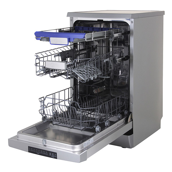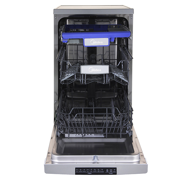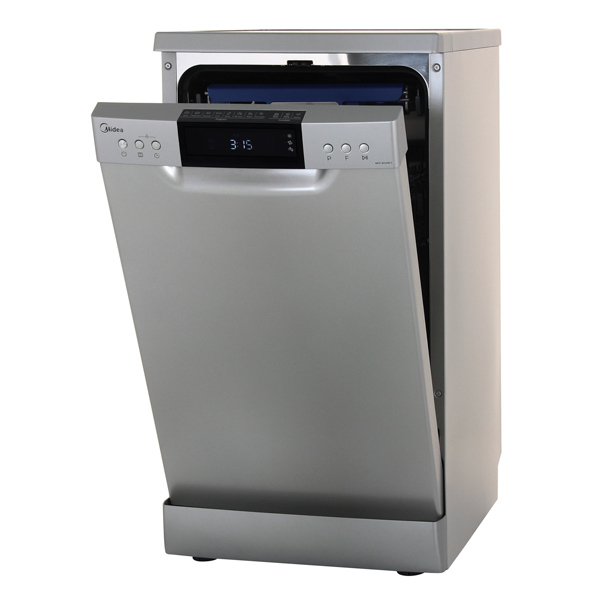 Посудомоечная машина Midea MFD45S500S оснащена тихим электродвигателем и расходует всего 8 литров воды за цикл. Модель проста в управлении и не занимает много места даже на самой маленькой кухне. За один раз она моет до 10 комплектов посуды.
