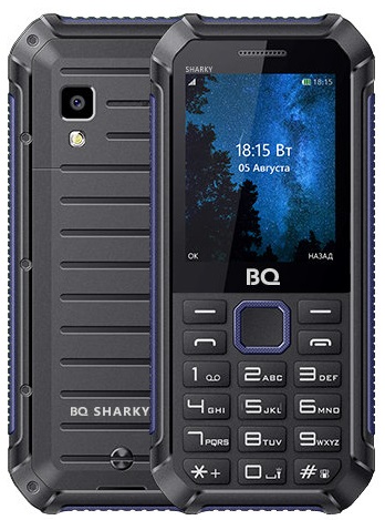 BQ M-2434 Sharky - телефон в ударопрочном+водозащищенном корпусе с поддержкой двух сим-карт, фотокамерой, FM-радиоприемником и слотом для карты памяти.
