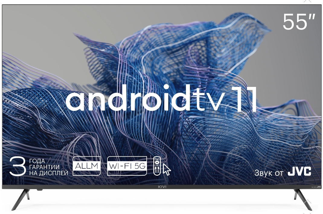 Смарт телевизор KIVI 55U750NB - это реалистичное и контрастное изображение, четкий звук с калибровкой от JVC, гибкая операционная система Google TV 11 и современный безрамочный дизайн, гармонично дополняющий любой интерьер.