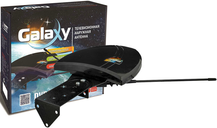 Антенна всеволновая малогабаритная телевизионная наружная с усилителем «BAS-1318-DX Galaxy» специально разработана для приема цифрового эфирного телевидения стандарта DVB-T2, но применима и для приема аналогового телевизионного сигнала.