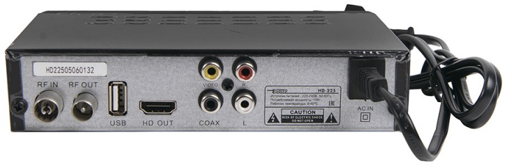 На задней панели ресивера расположены следующие разъемы: HDMI; USB; RF IN;RF OUT; Композитный аудио-видео выход (RCA); Сетевой шнур. Обратите внимание, что ресивер имеет 2 USB разъема, что позволяет подключить одновременно wi-fi адаптер и флешку.