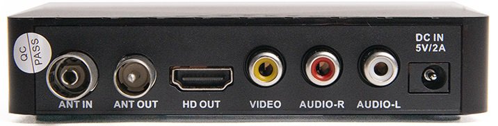 На задней панели ресивера расположены следующие разъемы: HDMI;ANT IN;ANT OUT; Композитный аудио-видео выход (RCA); Разъем для подключения внешнего блока питания. Обратите внимание, что ресивер имеет 1 USB разъем, в него можно подключить wi-fi адаптер.