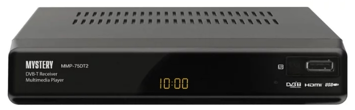 Современный цифровой ресивер DVB-2 MYSTERY MMP 75DT2 совмещает в себе доступную цену и полный набор технических характеристик, необходимых для устройств его класса. Основная функция приставки заключается в приеме и преобразовании цифрового сигнала в формат, поддерживаемый телевизором, и, тем самым, предоставлении доступа к максимально широкому числу каналов. Высочайшее качество изображение обеспечивается поддержкой форматов HDTV 720p/1080i/1080p. Встроенный USB-порт позволяет подключат к ресиверу внешние носители и использовать его в качестве медиа-плеера, способного воспроизводить фотографии, а также аудио- и видео-файлы с самыми популярным расширениями – JPEG, Mp-3, AVI, MKV и т.д. Подключение к телевизору осуществляется через стандартный интерфейс HDMI. Благодаря своему сдержанному дизайну и небольшим габаритам, черный ресивер DVB-2 MYSTERY MMP 75DT2 легко впишется в любой интерьер.