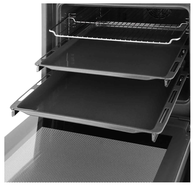 Дверца закрывается плавно, поэтому вы не сломаете и не разобьёте её, даже если неаккуратно отпустите. Трёхслойное стекло практически не нагревается снаружи, так что риск ожогов минимален. А защита от детей не позволит вашему ребёнку сбить настройки духовки.