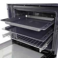 Встроенный доводчик позволяет закрывать дверцу плавно и бесшумно. Телескопические направляющие помогут достать горячее блюдо, не обжигая рук.
