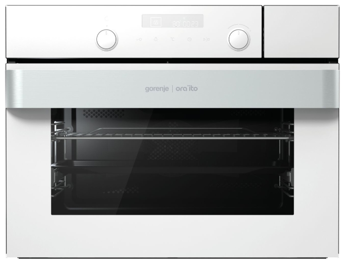 Компактная духовка с функцией пароварки Gorenje BCS547ORAW — многофункциональный прибор из линейки Ora-Ito. На стеклянной панели управления расположены утапливаемые переключатели и сенсорный программатор IconLED+. Режимы приготовления на гриле и на пару, вентиляционный и классический нагрев предоставляют широкие возможности для создания настоящих кулинарных шедевров. Благодаря покрытию пиролитической эмалью очистка паром AquaClean внутренней поверхности духовки эффективна и проста.