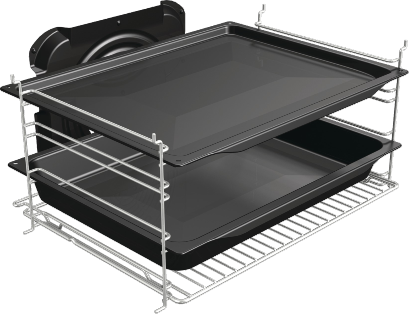 Качество и тип эмали крайне важны для качества духовки и ее работы. SilverMatte — суперстойкий и высокопрочный материал, способный выдерживать очень высокую температуру и пиролитическую очистку при 500°С. Гладкой, непористой эмалью покрыты внутренние поверхности духовки и противни, что делает их устойчивыми к высокой температуре, микроволнам и пару. Тройное покрытие внутренних поверхностей отражает высокую температуру и обеспечивает дополнительную изоляцию. Активное покрытие позволяет сжигать загрязнения при высокой температуре, которая также устраняет любые микроорганизмы, и поддерживать чистоту и безопасную среду в духовке.