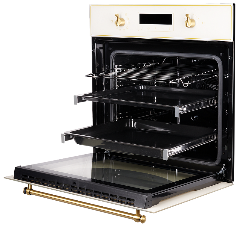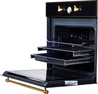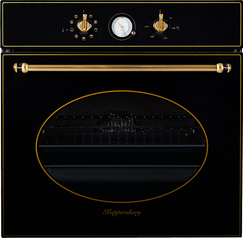 Kuppersberg SR 663 B — надёжная «духовка на каждый день» с ретро дизайном и обилием рабочих режимов. Модель с двойным остеклением дверцы и механическими переключателями и достаточно функциональная — умеет готовить с помощью девяти режимов приготовления и бережно размораживать продукты. За духовым шкафом легко ухаживать, он легко очищается от пригоревших частиц.