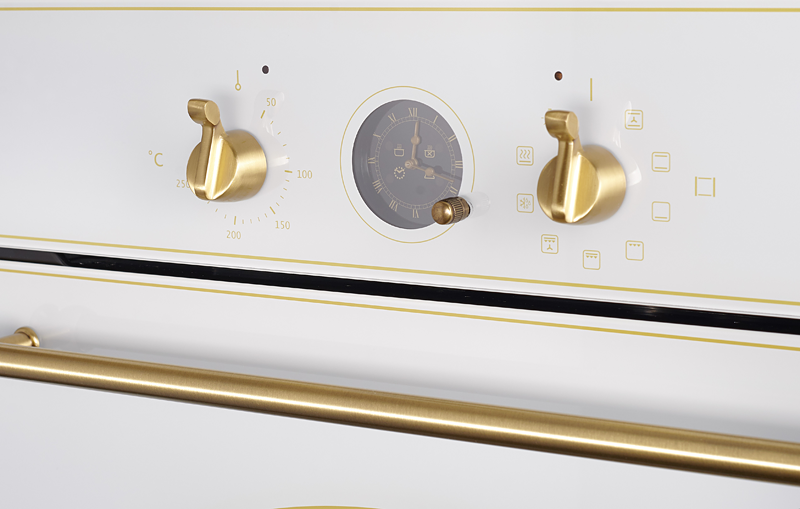 Удобные поворотные переключатели позволят вам с легкостью пользоваться этим духовым шкафом. Подсветка камеры и часы позволят полностью контролировать процесс приготовления.