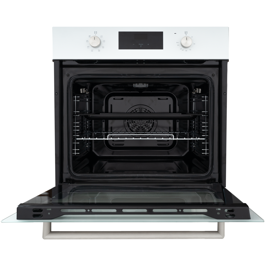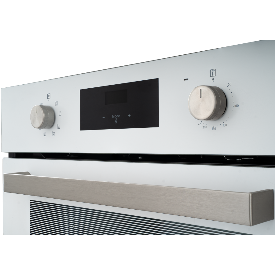 Духовой шкаф относится к стандартному типу духовок с шириной 59,5 см. Режимы духовки позволяют выбрать между разными комбинациями верхнего, нижнего нагревов, конвекции и гриля.