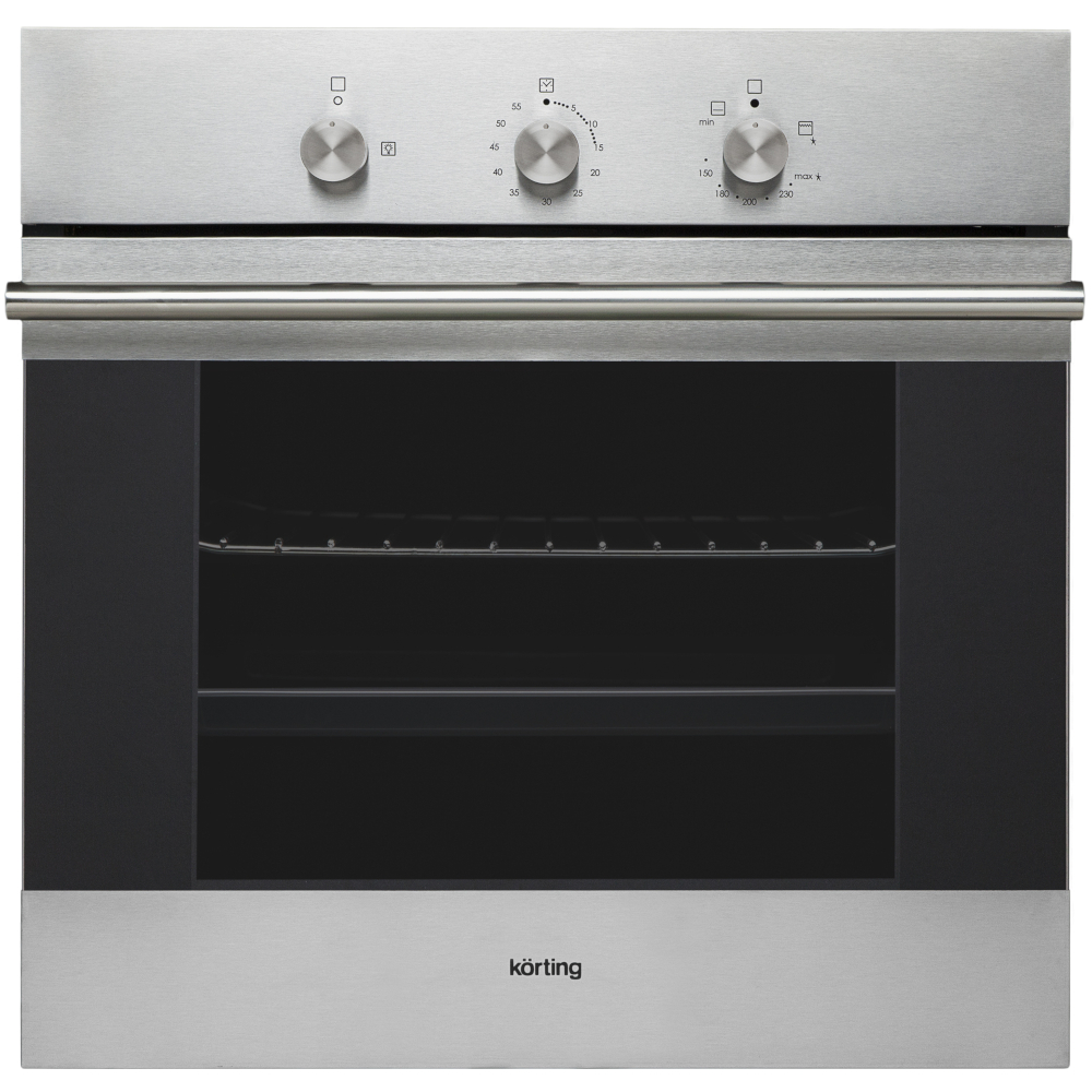 Система электроподжига от Korting очень удобна и абсолютно безопасна. Просто поверните и нажмите регулятор — пламя в духовке загорится автоматически.
