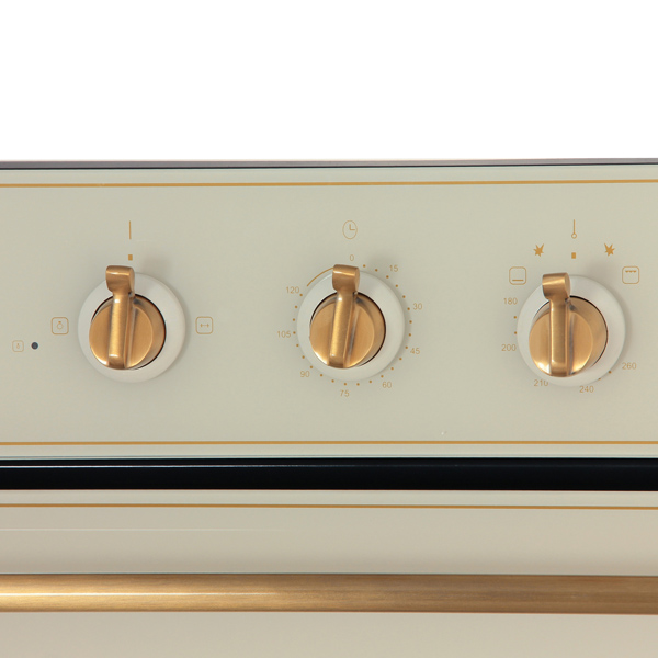 Духовка и газовый гриль оснащены функцией автоматического электроподжига. Для того чтобы начать готовить не потребуется спичек, нужно лишь повернуть механический регулятор. У модели есть встроенные часы и таймер на 180 минут.