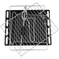 В устройстве имеется газовый гриль, который подходит для приготовления мяса с хрустящей корочкой. Кроме того, оно оснащено электромеханическим приводом вращения вертела, который помогает запечь утку или гуся целиком, а также приготовить домашнюю буженину.