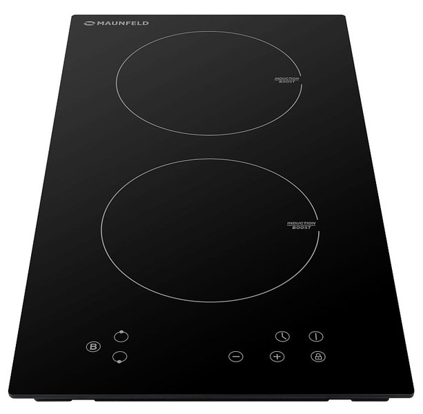 Maunfeld EVI.292-BK — это индукционная варочная панель типа «Домино». Выполнена из стеклокерамики чёрного цвета. Управляется с сенсорной панели. Есть таймер и функция бустера на обеих конфорках. Предусмотрена блокировка от детей.