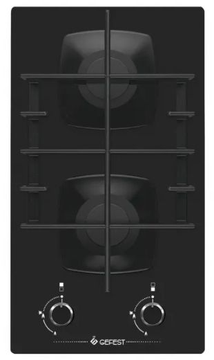 Встраиваемые газовые варочные панели Gefest (Гефест) ПВГ 2002 (чёрная) и ПВГ 2002 К12 (белая) имеют стеклянную поверхность, характерная особенность данной модели наличие двух рабочих зон. Электророзжиг горелок встроен в ручки управления панели. Наличие съемных чугунных решеток стола облегчают уход за варочной поверхностью. Фиксированное положение "малое пламя" позволяет готовить в экономичном режиме. Газ-контроль горелок стола обеспечивает безопасную работу техники. Данная серия это отличное решение для тех, кто подходит к планированию рабочего пространства на кухне нестандартно. Габаритные размеры ШхГхВ: 30х53х10 см. **Размеры монтажного проема, ШхГхВ**:  26.1x48.6 см.