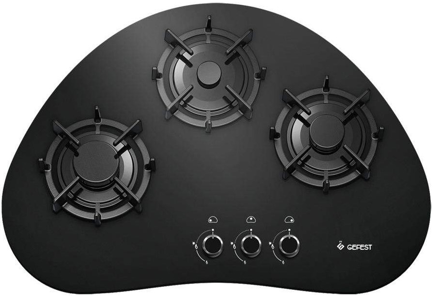 Встраиваемая независимая трехконфорочная газовая варочная поверхность оригинальной конструкции со стеклянным основанием, автоматическим электрическим розжигом и газ-контролем. Нестандартная форма поверхности и компоновка конфорок может удачно вписаться в стильный дизайнерский кухонный интерьер. Производителем позиционируется как модель среднего класса, предназначенная для установки в кухнях ограниченной площади или открытых кухонных зонах квартир с планировкой типа Open Space. Газовая варочная поверхность Gefest CBH 2120 оснащена тремя конфорками различного размера и мощности (вспомогательной до 1 кВт, полубыстрого действия до 1,7 кВт и большой 3 кВт). Такая компоновка позволяет эффективно работать с посудой разного размера и объема, обслуживая потребности небольшой семьи, состоящей из 1-3 чел. Еще одним достоинством этой модели стали устойчивые чугунные решетки, изготовленные в виде трех отдельных литых секций. Они служат надежной опорой для посуды, легко переносят действие высоких температур, а для очистки могут загружаться в автоматическую посудомоечную машину. Практичная система электрического поджига, встроенная в поворотные ручки механических газовых кранов, позволяет выполнять все манипуляции одной рукой. Газ-контроль предотвращает утечку газа при случайном затухания или срыве пламени.