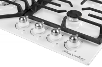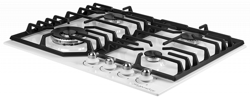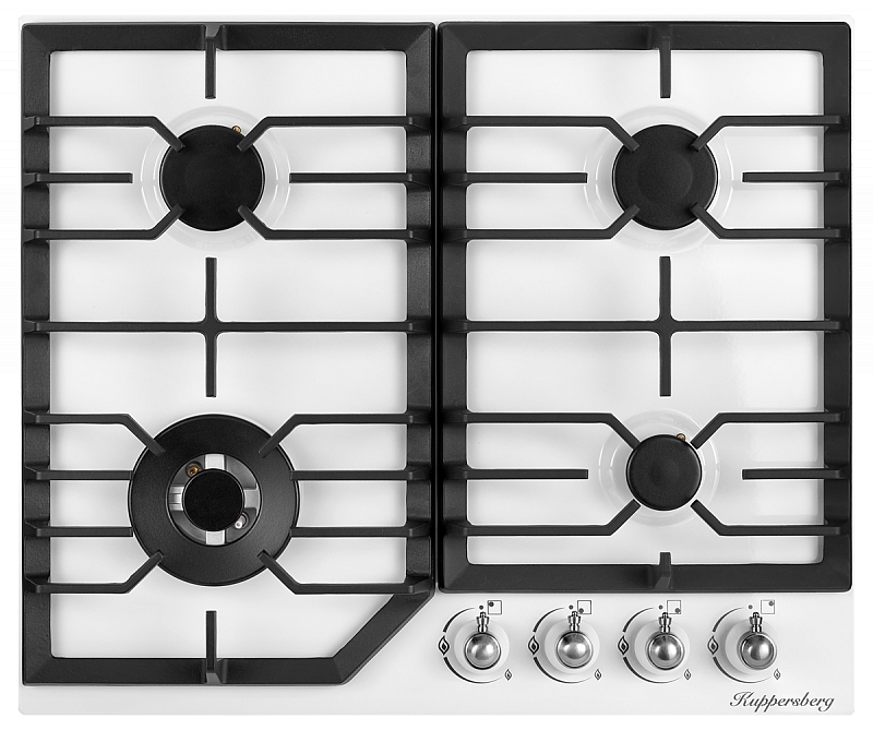Стильная газовая варочная панель Kuppersberg FS 603 W Silver, белого цвета с четырьмя конфорками и красивыми ручками «под серебро» , прекрасно впишется в любую современную кухню. Ширина панели 61 см. Встраивается в нишу 560 х 490 см . Поверхности FS 603  изготавливаются из металла, покрытый жаростойкой эмалью и оснащены чугунными решётками нового, интересного дизайна. Интересная модель с четырьмя конфорками под повседневные задачи (2.0 кВт, 1.0 кВт, 2.0 кВт, 3.0 кВт). Варочная поверхность Kuppersberg FS 603 W Silver удобная и безопасная, в ней есть все необходимое, что должно быть у хорошей газовой плиты: конфорки разного диаметра и мощности, система электроподжига, основательные чугунные решётки и система «газ-контроль». Если вы планируете использовать панель там, где нет магистрального газа, то просто достаточно заменить жиклеры под баллонный газ, которые есть в комплекте поставки.