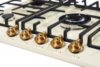 Особенности Форсунки под сжиженный газ; Чугунные подставки для посуды с круглым дном; поворотные переключатели цвета бронза.