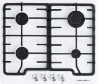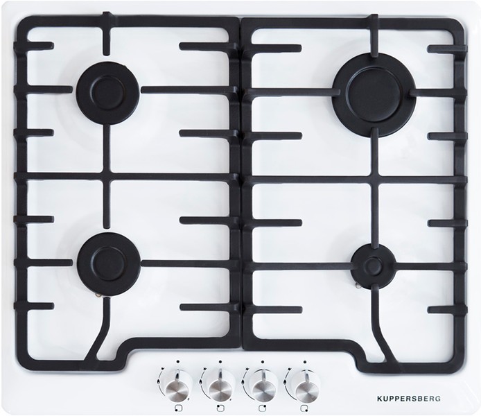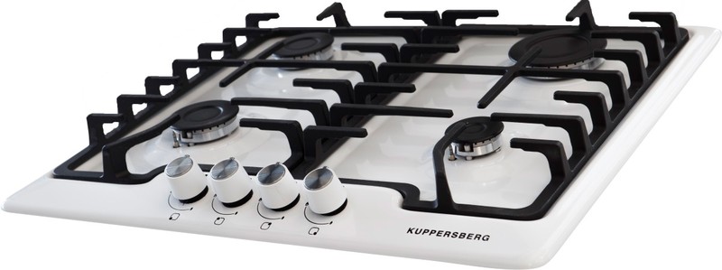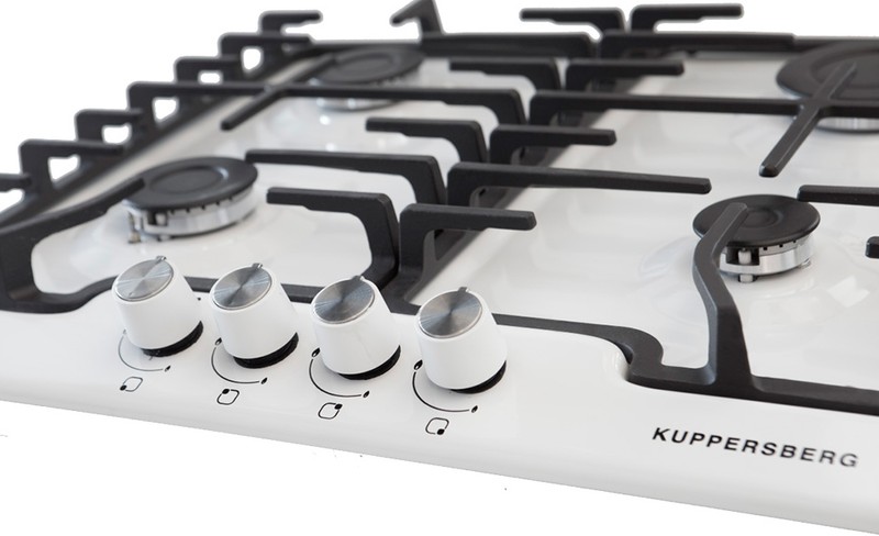 Варочная панель Kuppersberg TS 61 W белого цвета выполнена из эмалированной стали. Массивные чугунные решетки хорошо удерживают посуду. Прибор оснащен 4 конфорками, одна из которых повышенной мощности — 3 кВт. Автоматический электроподжиг и газ-контроль делают прибор удобным и безопасным в эксплуатации.