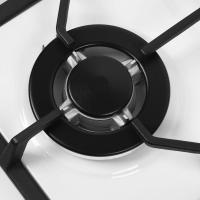 Чугунные решетки, газ-контроль, электроподжиг автоматический, 4 поворотных переключателя из высокопрочного термостойкого пластика с хромированными накладками, итальянские горелки «SABAF», жиклеры Sourdillion (Франция), возможность работы от магистрального газа и газа в баллоне (тип G30)