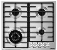 4 газовые турецкие конфорки: одна быстрая конфорка 3000W, две полу быстрые конфорки 1750W, одна дополнительная конфорка 1000W. Фронтальное управление, 4 поворотных пластиковых переключателя, автоматический электроподжиг под ручкой управления, возможность работы от магистрального газа и газа в балоне (тип G30).