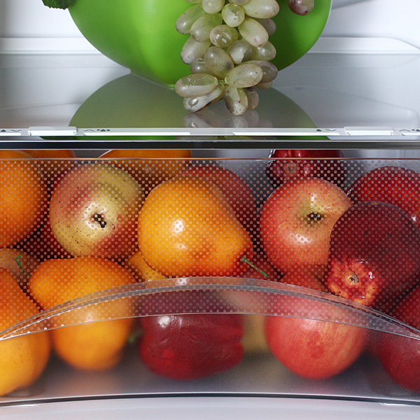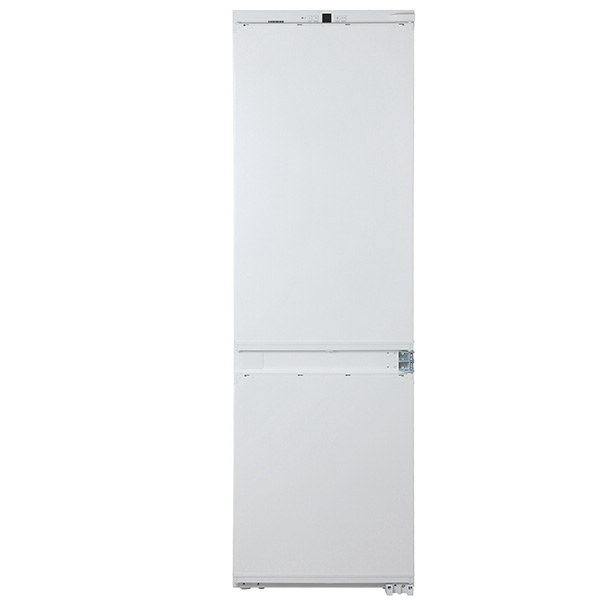 Встраиваемый холодильник чуть больше 1,7 метров в высоту и 0,5 метров в ширину. При таких размерах объём холодильной камеры составляет 208 литров, морозильной – 58 литров, зоны свежести – 68 литров. Всего встроены 2 камеры, морозильная находится снизу.