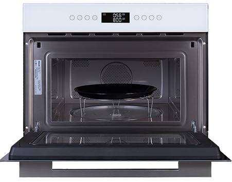 Дизайн: Встраиваемая микроволновая печь Graude MWG 45.0 W в белом цвете с 8 режимами нагрева и камерой из нержавеющей стали отличается элегантностью дизайна и многофункциональностью.