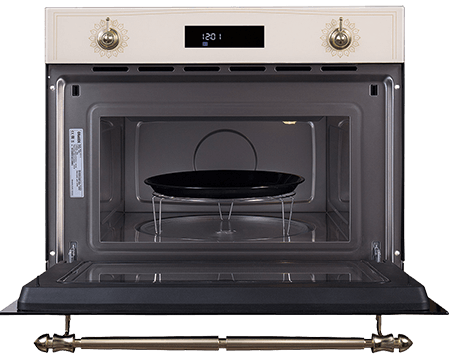 Дизайн: Встраиваемая микроволновая печь Graude MWGK 45.0 EL в цвете белый антик с 8 режимами нагрева и камерой из нержавеющей стали впишется в интерьер кухни в классическом стиле.