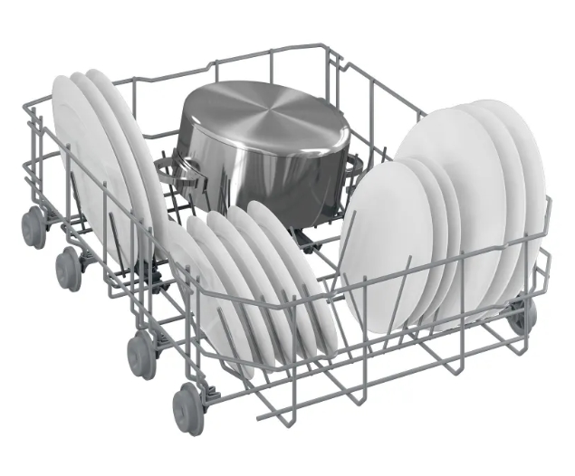 является узкой моделью, предназначенной для встраивания полностью в кухонный гарнитур. Она способна вместить до 9 комплектов посуды, что позволяет одновременно мыть большое количество посуды. Машина не имеет третьего уровня разбрызгивания, однако предлагает широкий набор функций для максимального удобства использования.