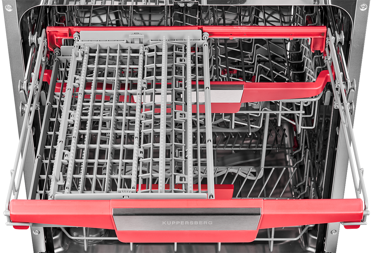 Посудомоечная машина Kuppersberg GLM 6075 оснащена дополнительным, третьим, лотком для столовых приборов. Это значит, что корзина, которая в обычных моделях служит для размещения ложек и вилок, не занимает места в посудомойке. В специальном лотке приборы лучше отмываются, их удобнее раскладывать и вынимать.