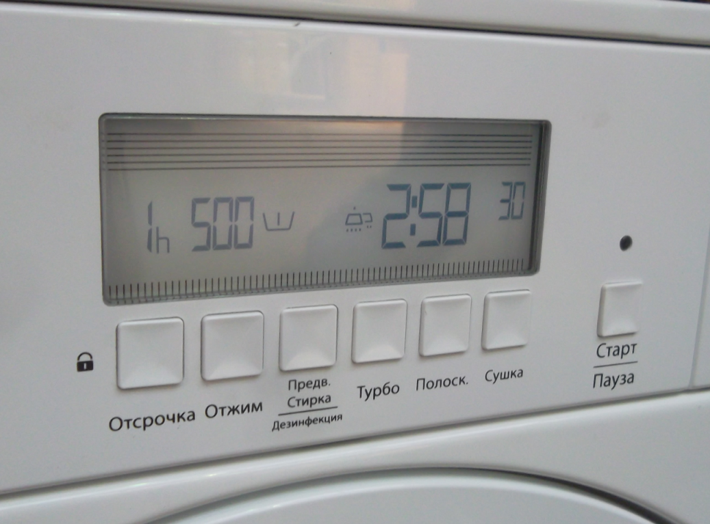 Скорость отжима (макс.): 1400 об/мин, регулируемый с выводом на дисплей