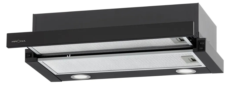 Вытяжка для кухни 60 см KRONA KAMILLA T (1 мотор) -  это современное решение с удобным управлением и мощной производительностью. Встраиваемые вытяжки KAMILLA T могут работать без соединения с вентиляцией, что делает их универсальным решением для любого помещения. Это особенно удобно в городских квартирах. Данная встраиваемая вытяжка для кухни сочетает в себе стиль и функциональность. Основное преимущество этой кухонной вытяжки – выдвижная конструкция, которая обеспечивает удобство использования, позволяя экономить пространство и, при необходимости, быстро приводить устройство в рабочее состояние. Благодаря LED освещению процесс приготовления пищи станет ещё более комфортным. Функция slide stop запоминает последнюю используемую скорость и включает ее автоматически при следующем подключении. Вытяжка идеально подойдет для помещений до 8 кв.м. Модель представлена в трёх цветах, что дает возможность подобрать оптимальный вариант под интерьер вашего помещения.
