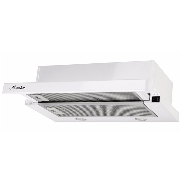 Встраиваемая вытяжка Monsher TELE II 60 W – высокопроизводительное устройство, которое работает с низким уровнем шума и быстро отводит из помещения загрязнённый воздух. Для функционирования в режиме рециркуляции необходимо дополнительно приобрести и установить угольные фильтры.